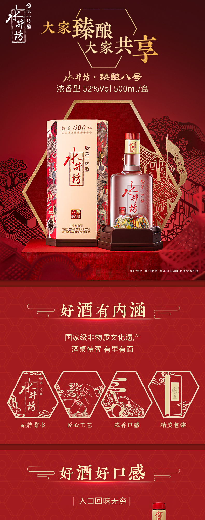 水井坊臻酿八号52度500ml浓香型白酒送礼纯粮食酒