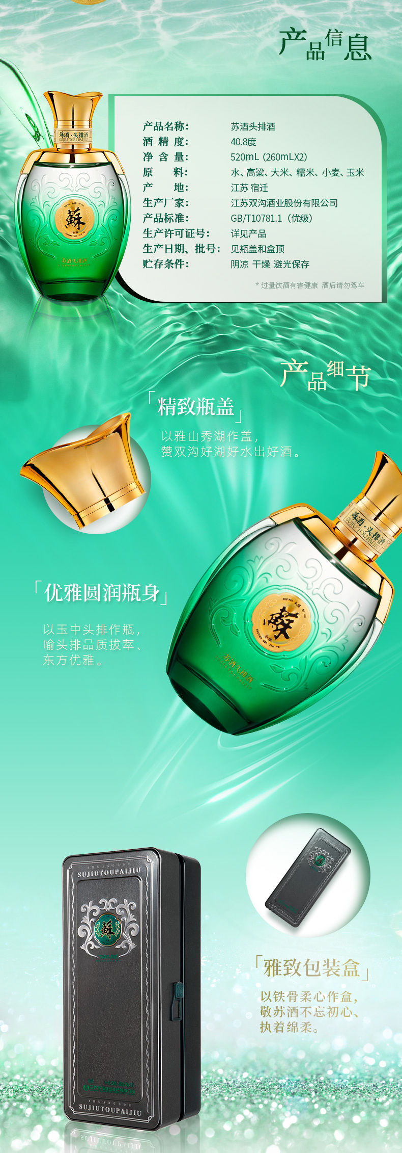 苏酒头排酒40.8度260mL*2瓶